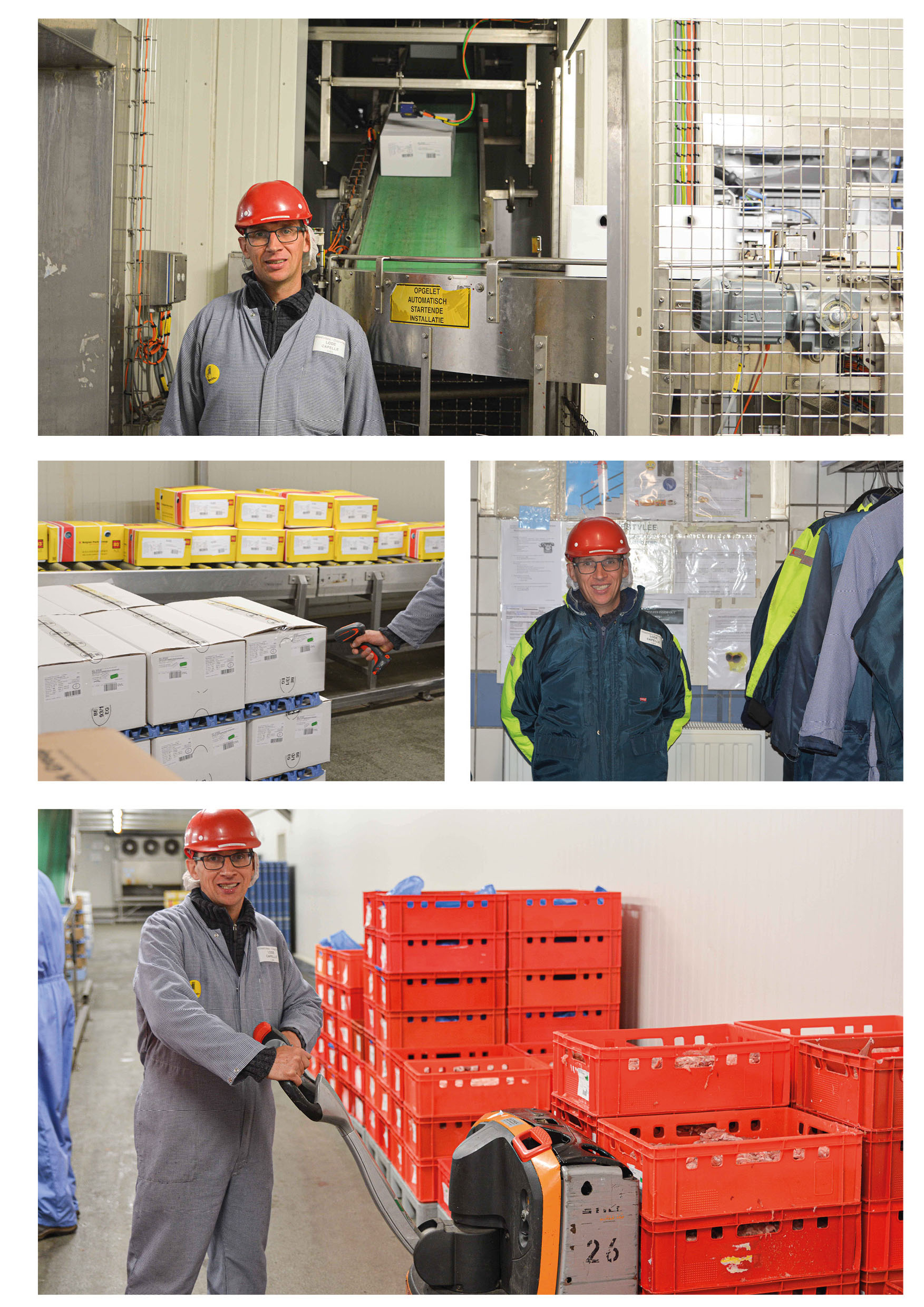 Mijn loopbaan begon hier 25 jaar geleden in de snijzaal. Daar kwamen mijn vaardigheden als beenhouwer goed uit de verf, maar toch koos ik voor een overstap naar de diepvriesafdeling. Hier werk ik mee aan het verzendklaar maken van onze diepvriesproducten door bijvoorbeeld palletgoederen in rekfolie te wikkelen en help ik ook bij het laden van allerlei vrachten zoals containerladingen. Tussen die werkzaamheden door zet ik mij ook in voor een veilige werkvloer. Ik probeer een informele verbindingsrol te spelen tussen mijn collega’s en onze preventieadviseur Jeroen Corvelyn.